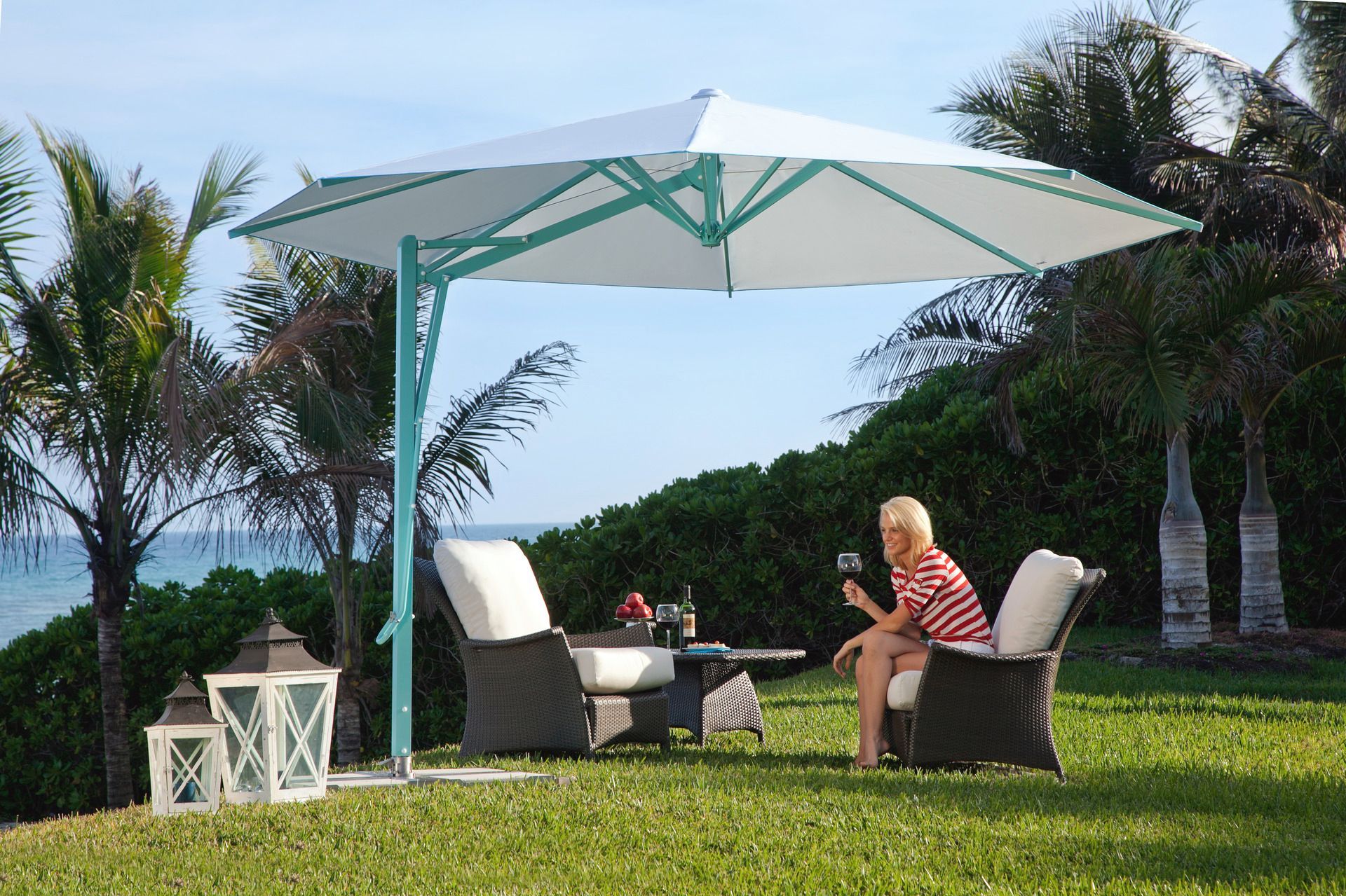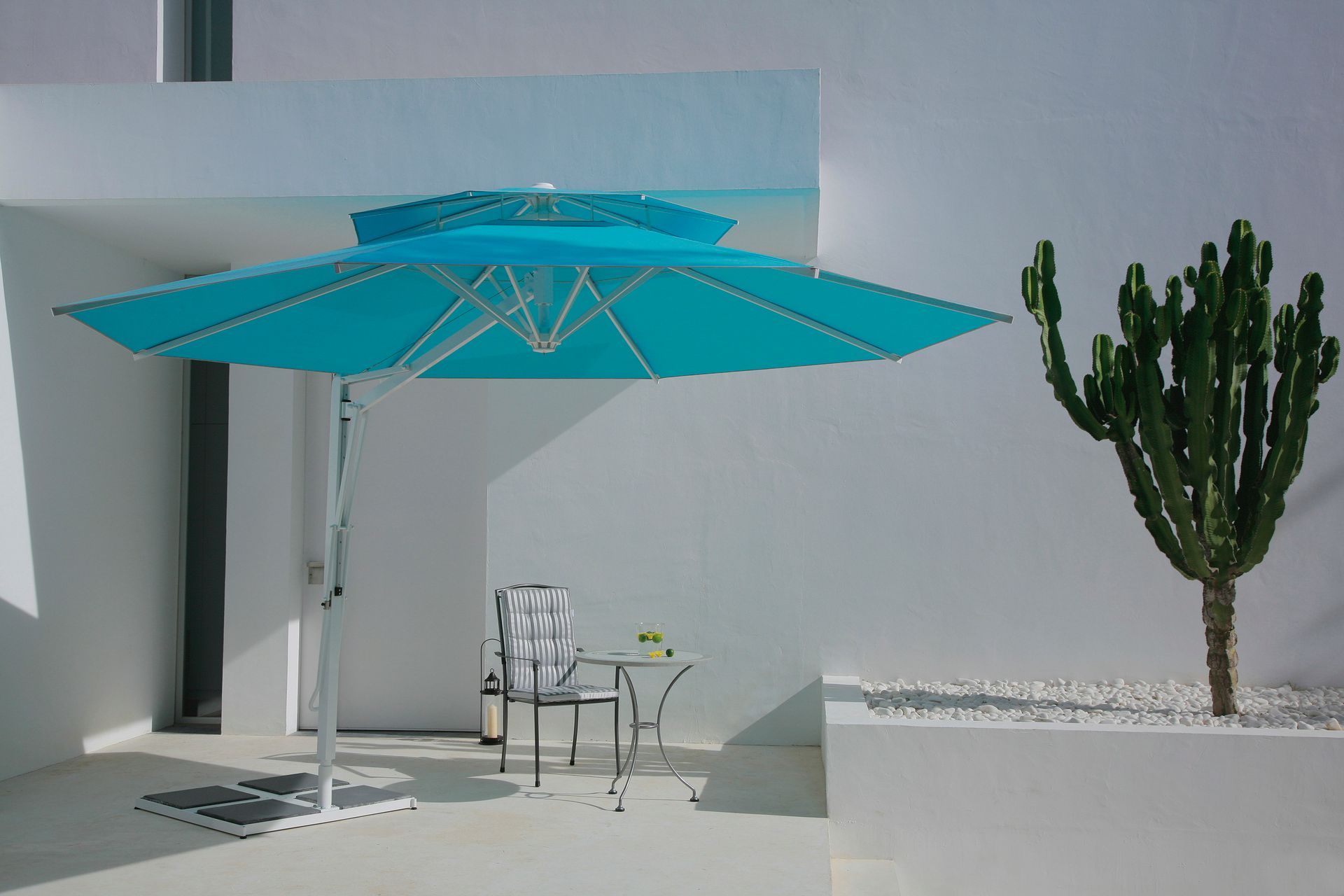 Belvedere on luultavasti maailman nopein aurinkovarjo. Älykkään Easy-Flap -teknologian ansiosta varjostin avautuu sekunneissa! Suljettuna se seisoo pystyssä ja vie vähän tilaa kuten keskitankoinen aurinkovarjo – avattuaan se muuttuu ulokevarjoksi, joka hyödyntää tilan optimaalisesti ja jolla on ainutlaatuinen muotoilu.